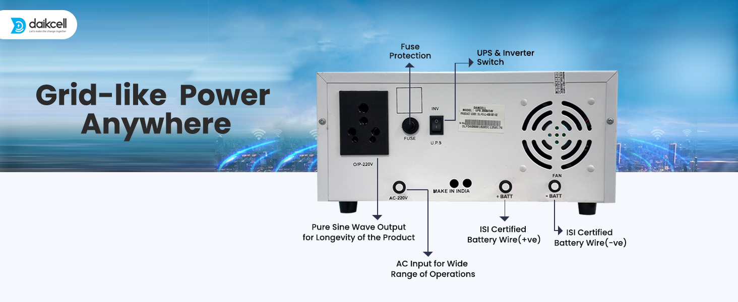 2000VA Pure Sine Wave Double Battery Inverter for Home, Office & Shops | Fast Charging | Automatic Bypass | High Performance | LCD Display | 24X7 MCB Protection | 1+ 4 Years Warranty
